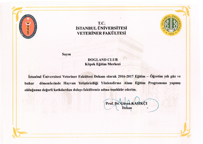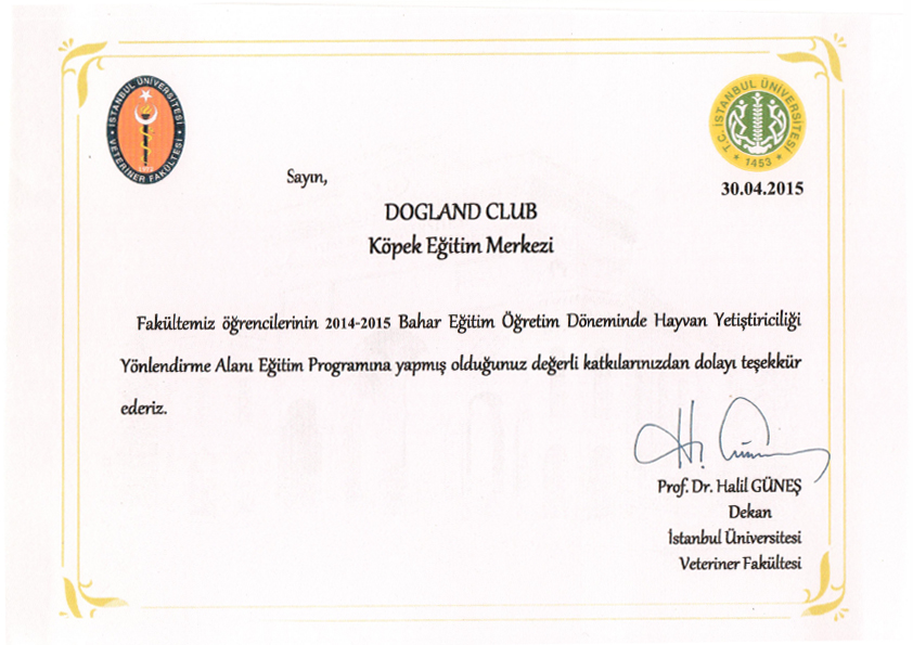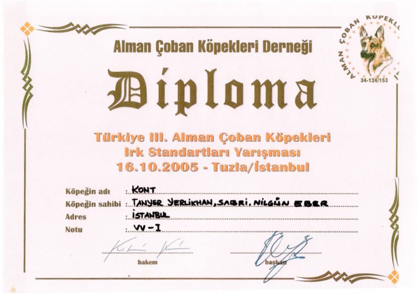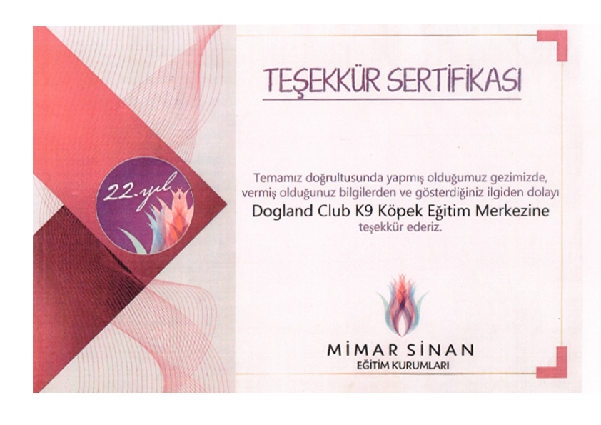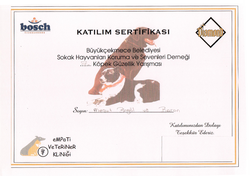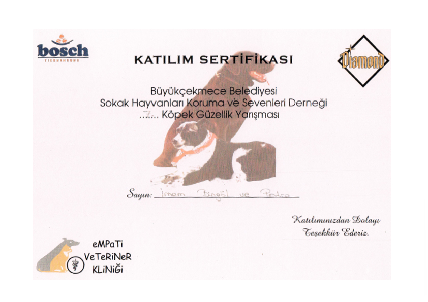Köpek Güzellik Yarışması Katılım Sertifikası