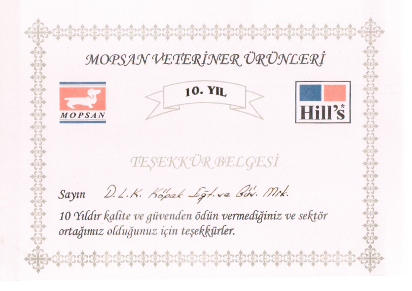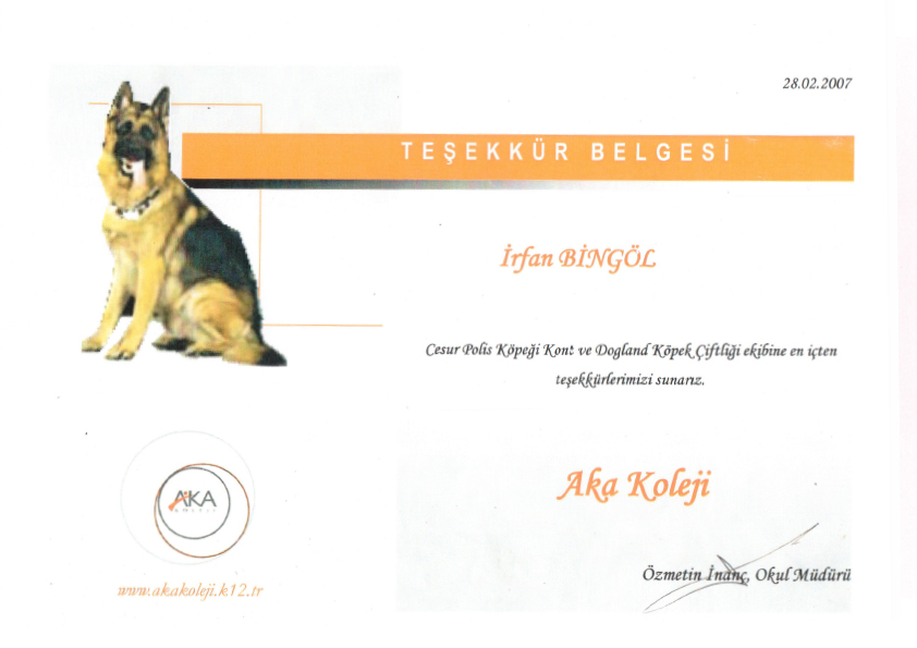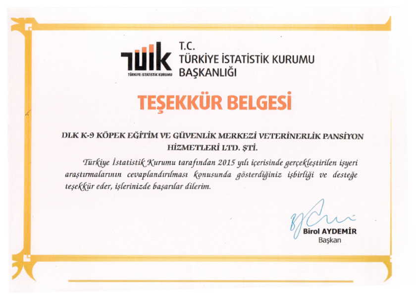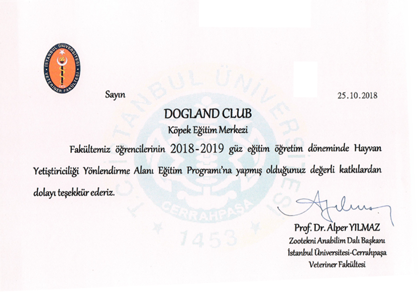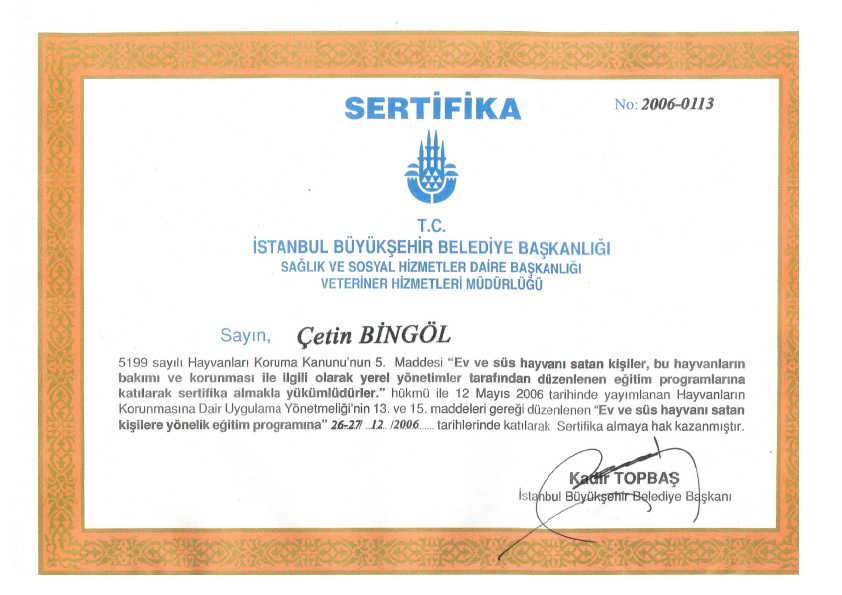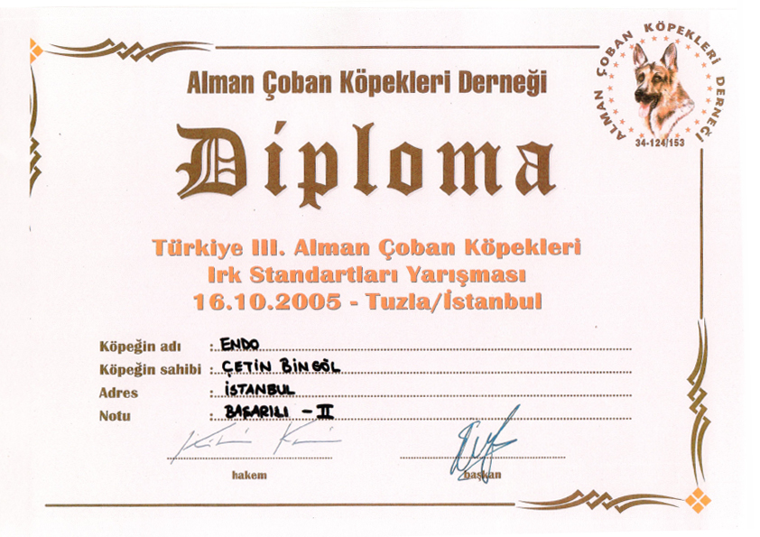 Köpek Güzellik Yarışması Katılım Sertifikası